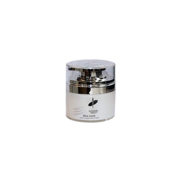 Blue Mask is een kalmerend masker voor de gevoelige huid, verstevigt de haarvaten en laat de eventuele roodheid verdwijnen, is voor alle huidtypen geschikt, geeft weinig vetten af aan de huid en is rijk aan vitamine PP en zoete amandel olie.